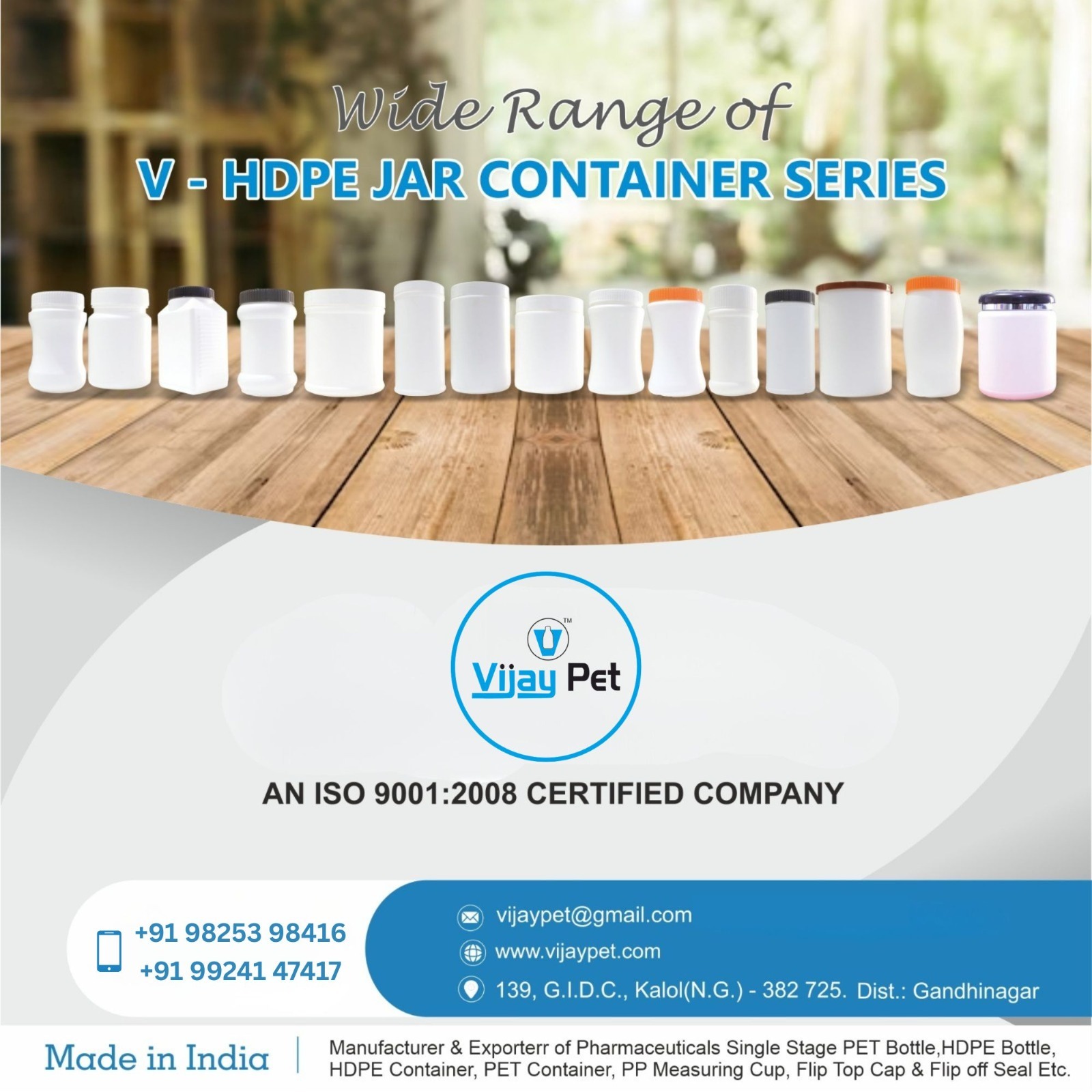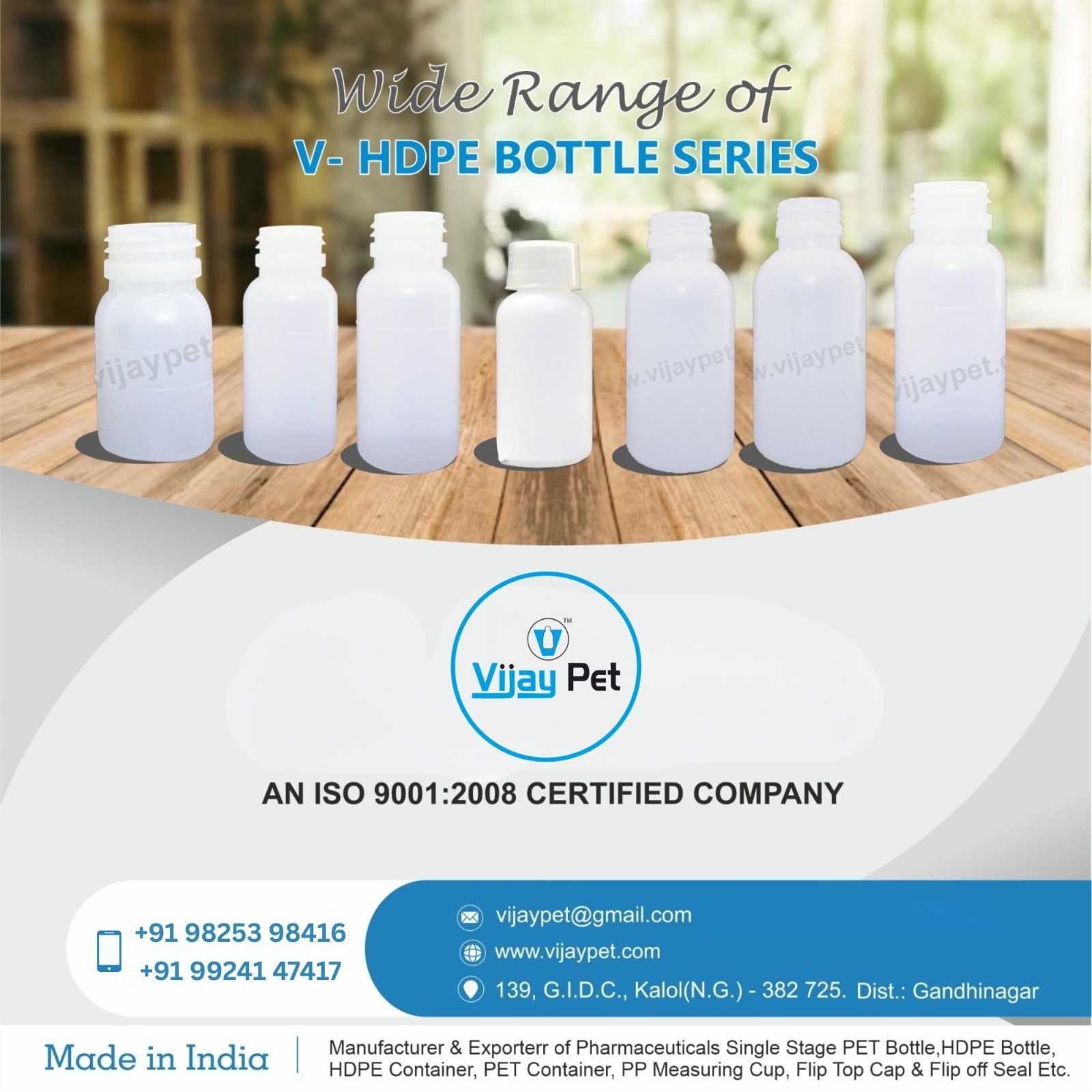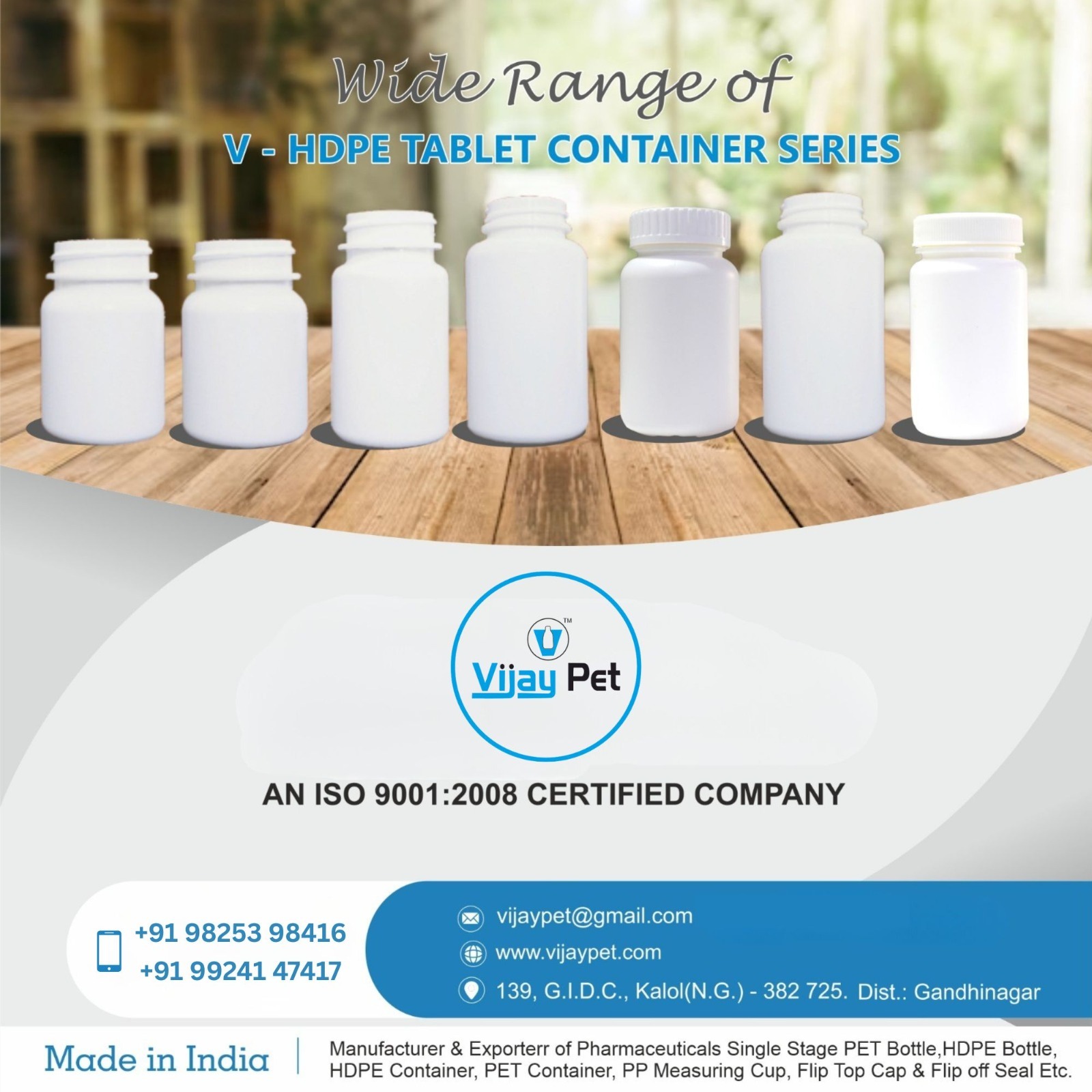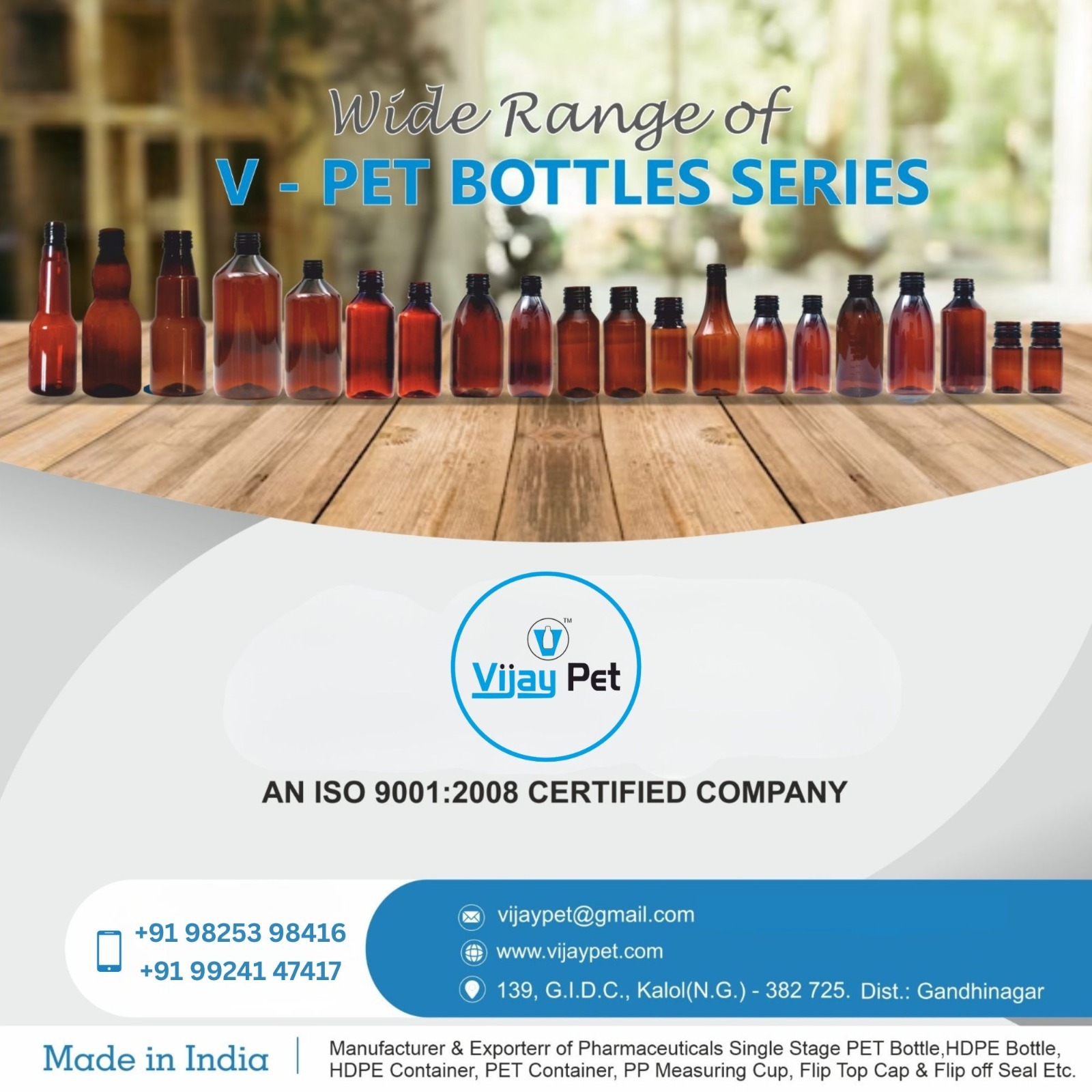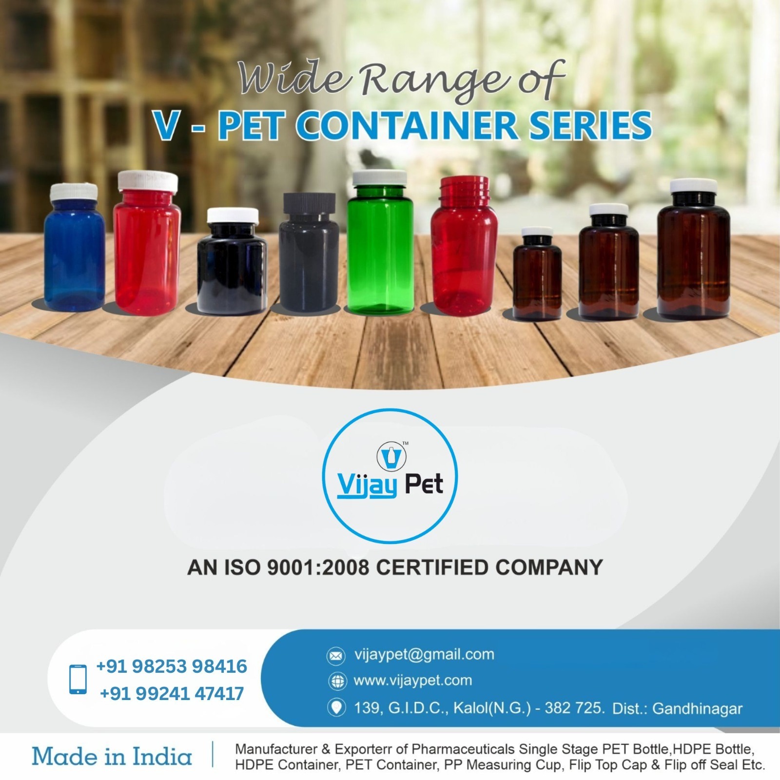 " Manufacturer & Exporter Of Pharmaceuticals Single Stage PET Bottle , HDPE Bottle , HDPE Container , PET Container , PP Measuring Cup , Flip Top Cap , Flip Off Seal etc... "