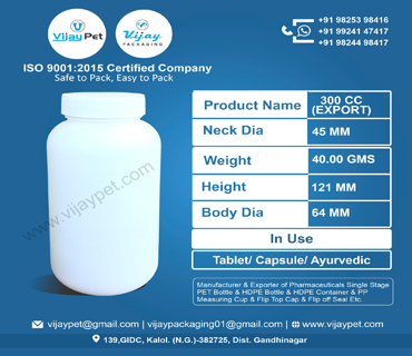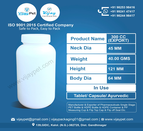 300 CC HDPE CONTAINER EXPORT