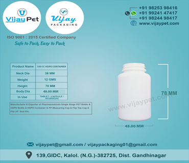 100 CC HDPE CONTAINER EXPORT