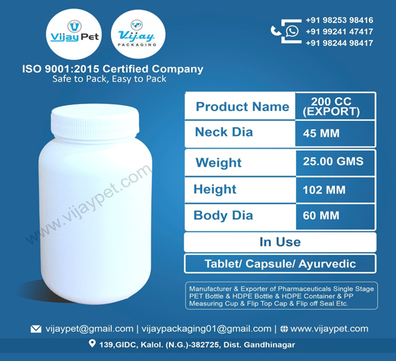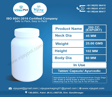 200 CC HDPE CONTAINER EXPORT
