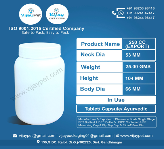 250 CC HDPE CONTAINER EXPORT